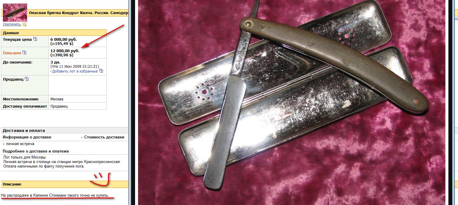 Re: Аукционы: плагиат, развод и "великолепные" описанияTras Krom, тебе всё шутки - а я тему пробил! Хочу такую бритву!