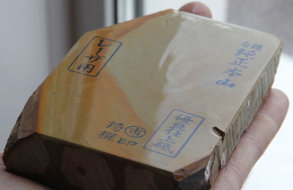 Продам чистокровного , натурального японца со всеми регалиями и штампами. Камень пришёл из старой японской парикмахерской в не пользованном состоянии. Представляю: NAKAYAMA MARUICHI для бритв, специально отборный финишник. Про надписи на этом камне можно почитать тут http://forum.guns.ru/forummessage/224/690404.html" onclick="window.open(this.href);return false; Вкратце, таблица надписей Spoiler Show Камень твёрдый, практически не выделяет суспензии. Гладкий.Тонко работает и быстро выглаживается поверхность. Идеально будет работать не только с нагурами, но и на "чистую." Имеет удобный бритвенный размер, позволяющий работать не только на столе, но и на весу. Характерно, что камень имеет две рабочие поверхности. Задняя часть также может быть использована , когда как лицевую сторону можно покрыть лаком и этим самым сохранить кендзи на будущее. Поверхность камня не имеет прожилок, разного рода включений, способных повредить зеркало кромки.Как правильно называется цвет, пока сказать не могу.( Киита?), но при намокании водой-оч. красивый оттенок получается. Прекрасный камень для новичка, кто не хочет тратить кучу денег на эксперименты. Камень мною полностью протестирован, дал прекрасный результат и готов служить верой и правдой не один десяток лет. Комплектуется коробочкой. Цена 250$ с доставкой.ПРОДАН Spoiler Show