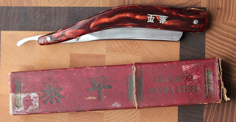 1.東和- Towa- "Това"( брэнд) 2. 登録- Tōroku- "зарегестрированный товарный знак". 3. 高橋源-Takahashi Hajime- имя и фамилия владельца конторы. Бритва начала 20 века в прекрасном состоянии для своих лет. Ширина полотна лезвия-20 мм Толщина обушка-20 мм. Инфа по производителю http://britva.ru/forum/viewtopic.php?f=47&t=4849" onclick="window.open(this.href);return false; Большая тема по японским бритвам вот здесь http://straightrazorplace.com/...raights-27.html" onclick="window.open(this.href);return false; Бритва шикарно бреет, как, впрочем и все японцы. Пластиковая ручка и углеродистая сталь в очень хорошем состоянии, без каких-либо проблем. Бритва заточена и полностью готова к пользованию. Цена-4500 р с доставкой.ПРОДАН Spoiler Show