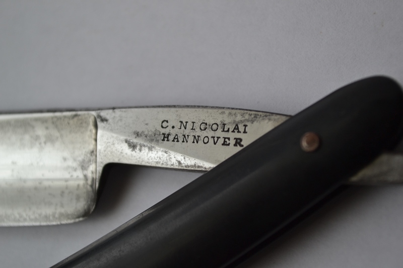 Итак, ширина головки/носка 23 мм, т.е. 7/8, ширина пяточки 20 мм. Вогнутость клинка... я еще не сталкивался с такой формой. Кованая (судя по следам)? Что означают эти надписи (производитель? имя заказчика, т.е. индивидуальный заказ? или др.)