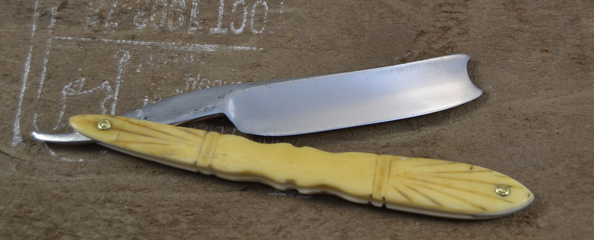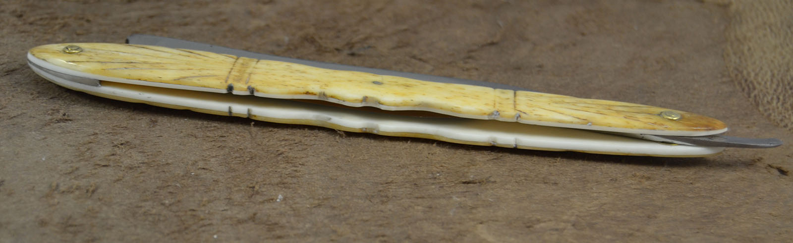 Надеюсь кому нибудь пригодится мой опыт спасения рукояти очень старой бритвы. Кость до того стала хрупкой, что начала ломаться при каждой неосторожной манипуляции, к тому же она никогда не была достаточно толстой. Ширина одной половинки была около 1.3, другой около 1.6 мм.