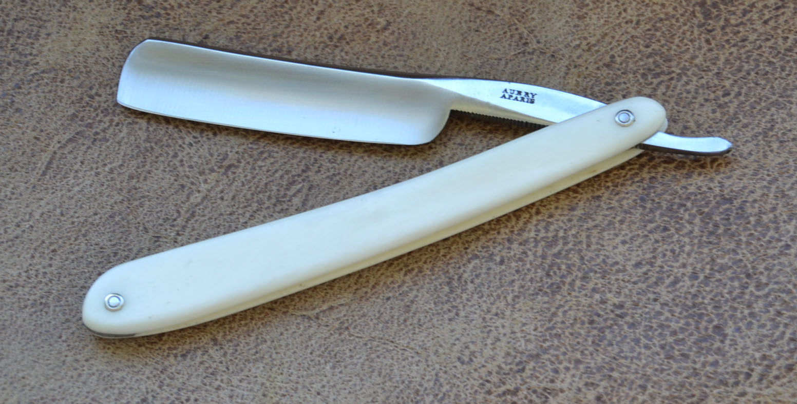 Англия. Предположительно первая половина 19 века. Ширина 6/8. Рукоять со слоновьего бивня. Необычный трехгранный обушок, массивный ухватистый эрль. Заточена, готова к бритью Цена 245$ Spoiler Show