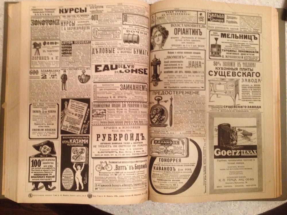 Re: The GILLETTE Company(*)Есть у меня подшивка старорежимного журнала "Нива" за первое полугодие 1913 года. В каждом номере последние 2-3 страницы отданы под рекламу. Очередной раз перелистывая ради развлечения обнаружил рекламу GILLETTE. Даже век назад вполне себе агрессивная. Ну и пару фоток не по теме для антуражу.