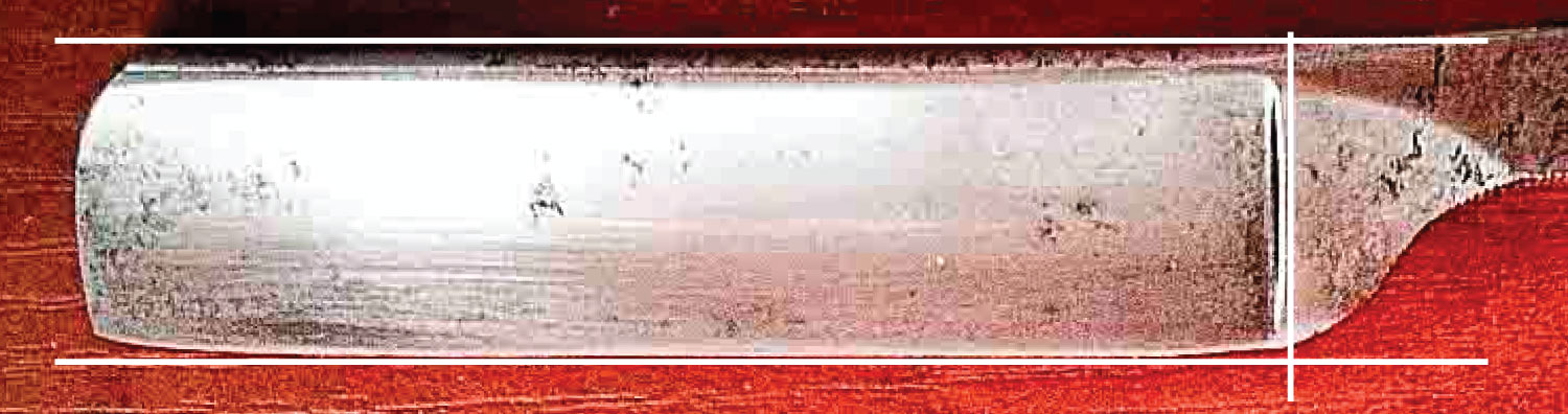 - Особая, имееет волну с торца, т.е. видно что пытались точить плоскость возле спуска, с одной стороны следы посередине, с другой стороны по бокам лезвия