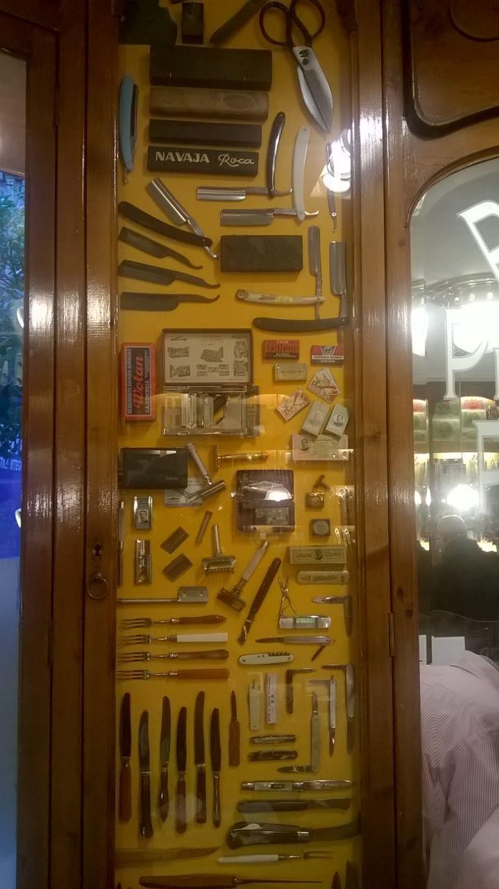 Впечатлений море, но не от бритв. Бритв совсем немного было. Престарелая дама ростом с "мнеподмышку" заявила, что найти новую филармонику нереально потому что их не выпускают более 50(!) лет. И предложила мне на выбор десятка три бритв. Из них около половины DOVO, штуки четыре Wacker, парочка ThiersIssard и три каких то кастомных с мозгососущим дизайном. Цены достаточно квадратные, самая дешевая дово 5\8 стоит 98 евро. К слову в цвиллингвском магазине в Дюссельдорфе я ее купил за 65))). Вакеры 210-460 евро, тиерсы - 340-410, кастомы даже спрашивать не стал, не люблю дизайн отличный от классического. Так же в магазе представлен огромный выбор помазком и косметики. И самое главное, что меня впечатлило - выбор ножей просто огромен. И камней. Была даже накаяма бритвенного размера, но смутила цена в 4 сотни евро. В общем как то так. Вот фото: