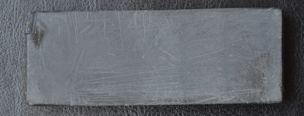 Re: Помогите определить каменьКамень №3. Большой (230х38х17мм). Тяжелый, плотный. Думаю, раньше на нем работали с маслом - вода на нем не держится совсем, скатывается. Металл грызет очень быстро, но, вместе с тем, мягко.