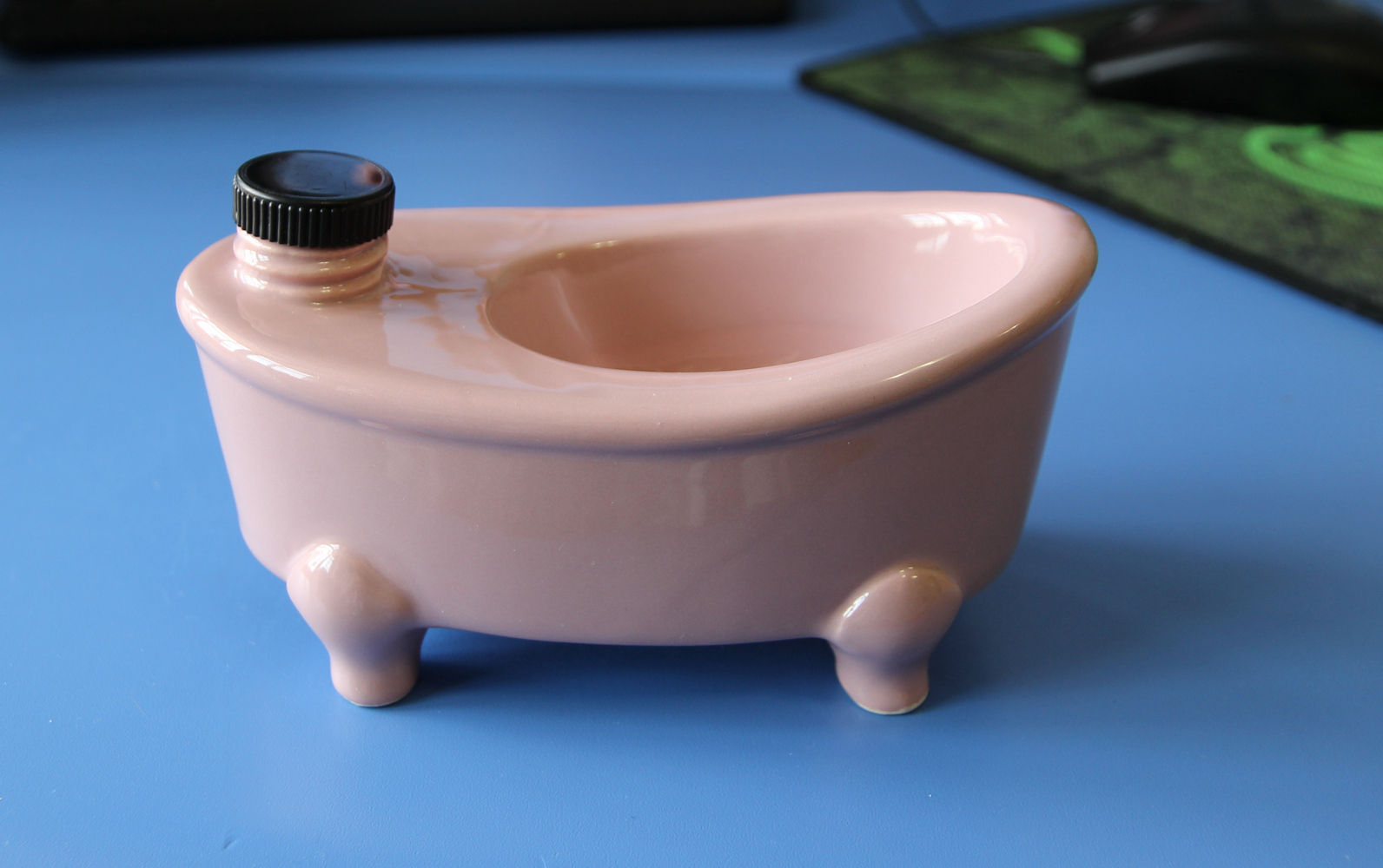 Вы уверены, что чаша у Вас - оловянная? Олово - весьма ядовитая штука.. Добавлено спустя 7 минут 3 секунды: У меня испанский лошадиный Vie-Long - тоже спутывается внутри, около ручки. Есть ещё четыре разных - турецкий конь, испанская свинья, китайский барсук, и simpson-барсук. Больше ни один помазок не подвержен этой шняге. Видимо, дело в производителе. М.б. у них клей такой - от горячей воды растекается.. Добавлено спустя 6 минут 58 секунд: Брился-брился-брился.. Нравится. Дабы усугубить удовольствие до состояния кайфа, задумался о покупке скаттла.. полазил по интернет-заграницам, попереписывался с отечественными колдунами гончарного круга.. Жаба орёт: " Да ты охренел, две-три тысячи рэ! За глину! А вдруг разобьют при пересылке?!" Робкие мысли о теплом помазке жабу не убедили: она и зимой вместе со мной - в одних шортах.. жарко дома. Шел сегодня мимо хозяйственного отдела в ТЦ, увидел за 300 рублей вот такое: Насколько я понял, это глиняное изделие китайлегпрома - для жидкого мыла.. Пимпочка на резьбе откручивается и заменяется крышкой из-под хренового коньяка (хороший пробками из искусственной пробки не запробывают) Маловато, конечно, корытце - внутренняя ванночка всего на 110 граммов, 9 на 5 на 4,5 (длина\ширина\глубина). Внутрь же влить можно ровно 300 граммов. Вес конструкции - всего 168 граммов. Минусы: не круглое, небольшое, гладкое. Поросячий цвет. Плюсы: лёгкое, дешёвое, греет. Привыкну к скаттлу, придушу жабу, куплю, наверное вот такое: georgetownpottery..
