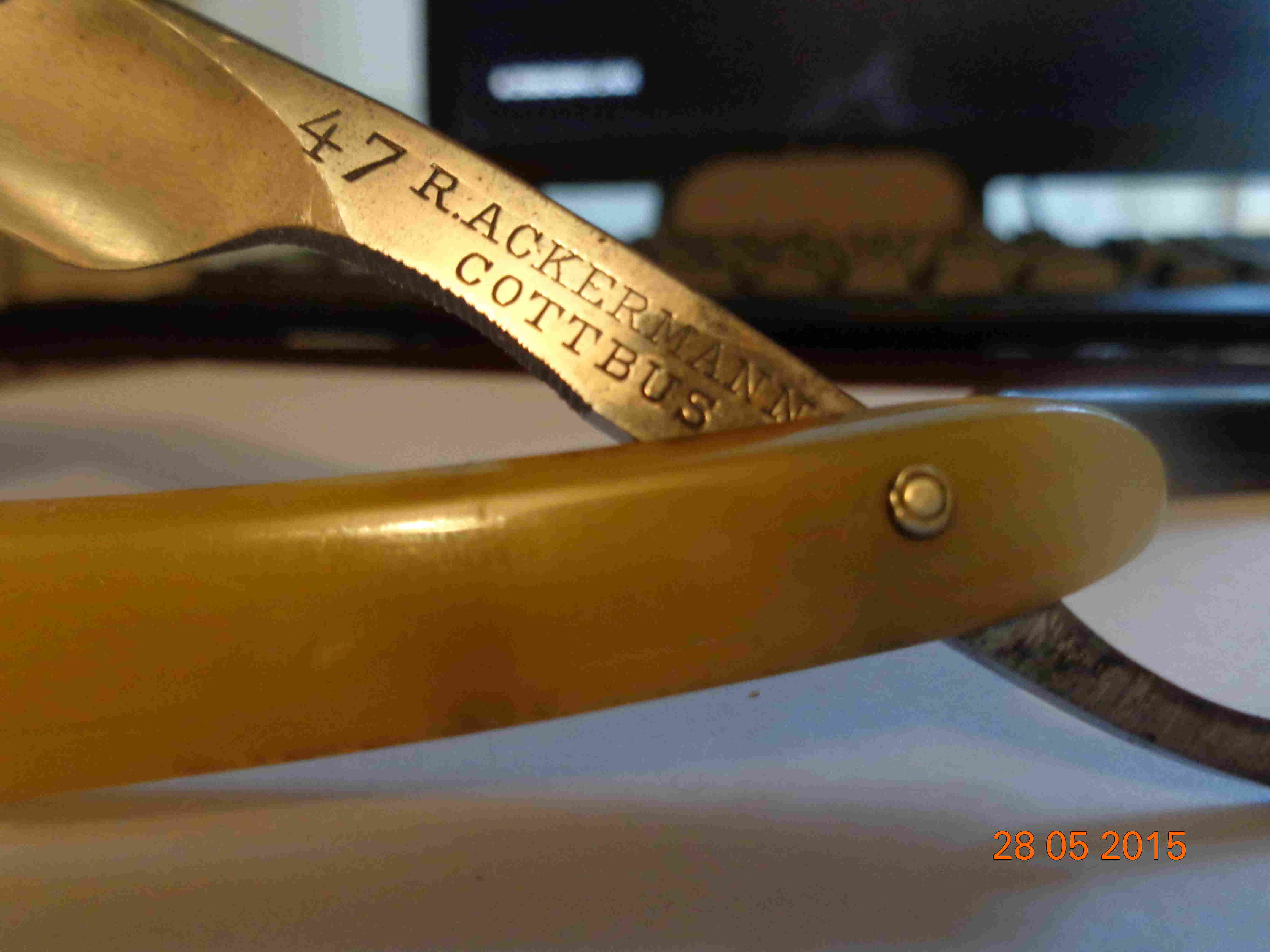 Re: Robacko R.Ackermann CottbusДумаю 30-годы. Но связь подтверждаю по своему посту выше. Предприятие явно связано с именем этого гениального человека. Ремонт опасных бритв, звонить с 11-00 до 23-00, +79267729357, (viber, whats app, telegram, VK), спросить Олега.