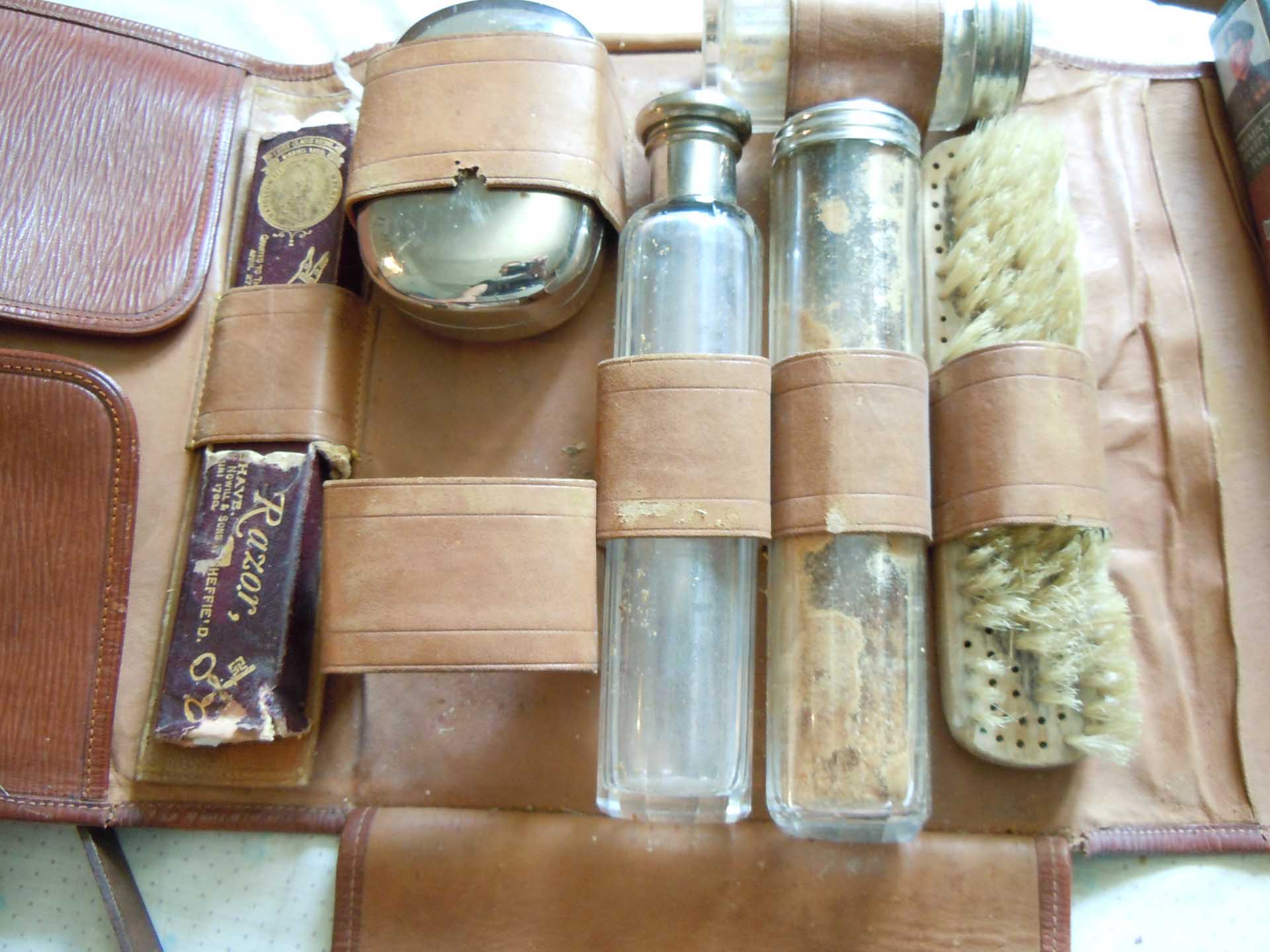 Дата выпуска сложно сказать тут сборная солянка чехлы такие шли в 50-х часть наполнения старее часть этих времен. Ремень сверху вообще не от нессесера Бритву могли вместо зубной щетки (они почти всегда разваливались так как ими пользовались) положить так, что как то так. Место под мыльницей аккурат под тэшку. Олег Бритва писал: