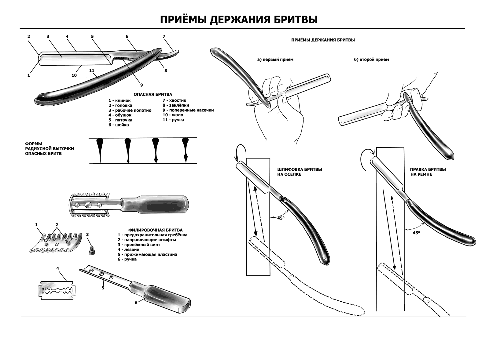 не несу ответственности за последствия применения показанных на фото хватов бритвы другими людьми. Re: Нестандартные хваты бритвы.вот точно. Читал, что раньше парикмахеры брили в двумя бритвами, сначала 7/8 и большой пеной, потом 3\8 и низкой пеной. Я еще подумал, зачем им такие изыски..... Re: Нестандартные хваты бритвы.