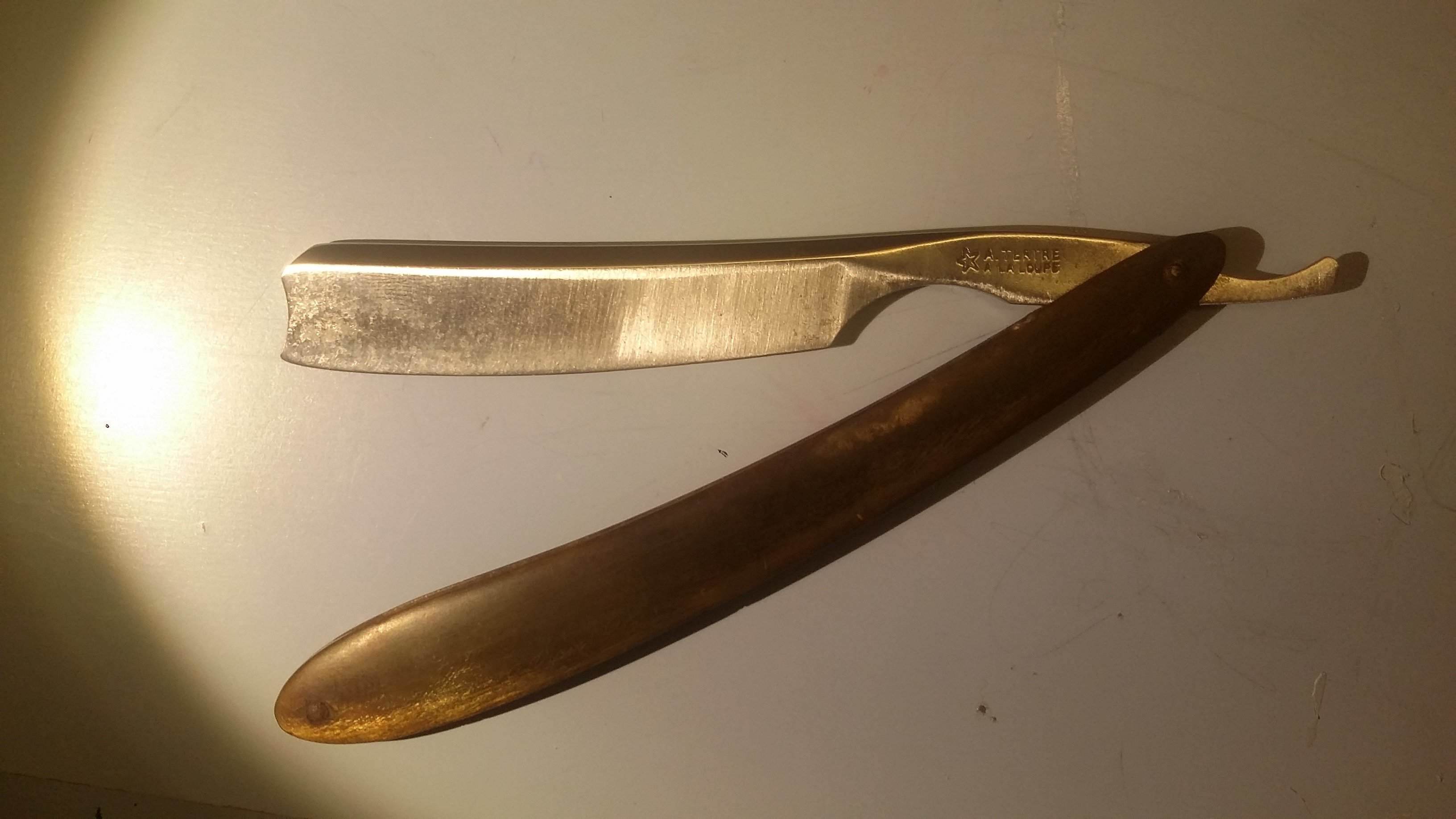 Re: Вопрос по восстановлению бритвы.В работе бритва точно не была, а износ обуха от того что мне пришлось сточить примерно 0.5 мм РК чтобы убрать дырочки от коррозии. Фетровым диском до самой РК я не доходил примерно 2 мм и там остался заметный слой патины. Пока что заточил на кусочке бельгийца и немного поводил по чистому офицерскому ремню. Надеюсь приятель найдет вскорости старый отцовский прибор с натяжением ремня - буду на нем заправлять. Уже есть неуверенный рез волоса на. вису. А бриться я клинковой бритвой пока что не пробовал....