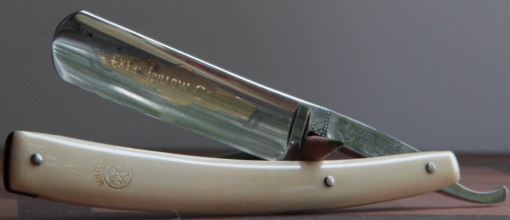 Осталась последняя пора Иссардов: 6/8 и Гном 5/8. Последний шанс забрать пару бритв от известного производителя, разных моделей и форм лезвия и в идеальном состоянии. Вот такого интересного CARL RADER SOLINGEN предложу. Кучку подобных бритв уже раньше выставлял http://britva.ru/forum/viewtopic.php?f= ... 9&start=80" onclick="window.open(this.href);return false; Ширина полотна-21мм Толщина обушка-5.5мм Полная вогнутость. Бритва непользованная и в очень хорошем сохране.Не ремонтировалась и не разбиралась. Исключение-небольшое пятнашко окисления у носика, от долгого хранения.Чистить также не стал, чтобы сохранить картинку и оставить заводской гринд. Удобная, трёх-пиновая ручка. Удобный, красивый экземпляр. Будет заточена впервые. Право первой ночи предоставлено счастливчику-новому хозяину. Цена-8500 с доставкой.ПРОДАН Spoiler Show
