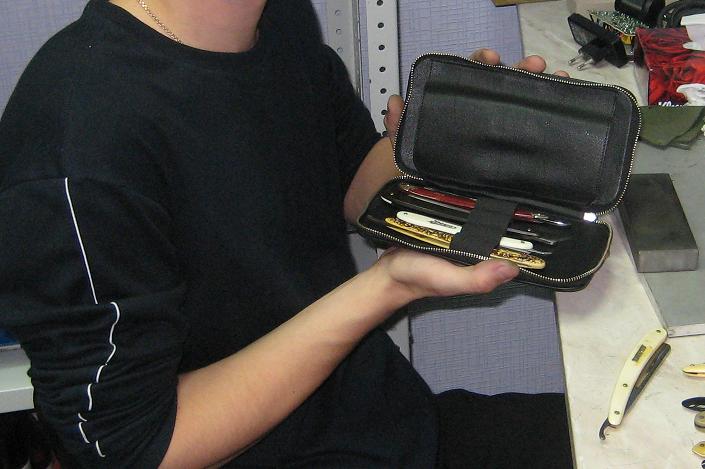 Re: WELLINGTONОлег Бритва, помнишь, приносили черный кожаный футляр, в нем было 4 красивых бритвы и 2 маленьких складных ножа.