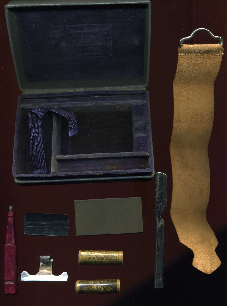 - два кусочка пасты (?) для правки бритвы в оригинальной нетронутой упаковке,
