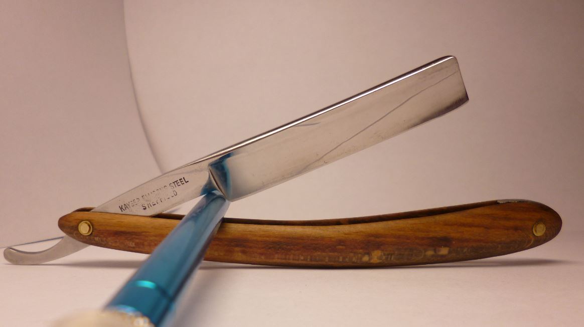 Бритва досталась как довесок к крупной покупке у нашего эстонского друга, в достаточно плачевном состоянии, с обратной улыбкой, сточенным носиком, коррозией и без ручки. Мы ведь не ищем легких путей. Для начала укоротил носик, вычистил ржавчину в пределах разумного, выровнял кромку. Заточил, вполне себе комфортно побрился. Остаточная ширина получилась 15мм. Сделал ручку. Дерево - бук. Пропитка - льняное масло. Клинышек - олово. Помидоры и критика приветствуются. Еще фото Show Изначальное состояние (осторожно, шок-контент) Show