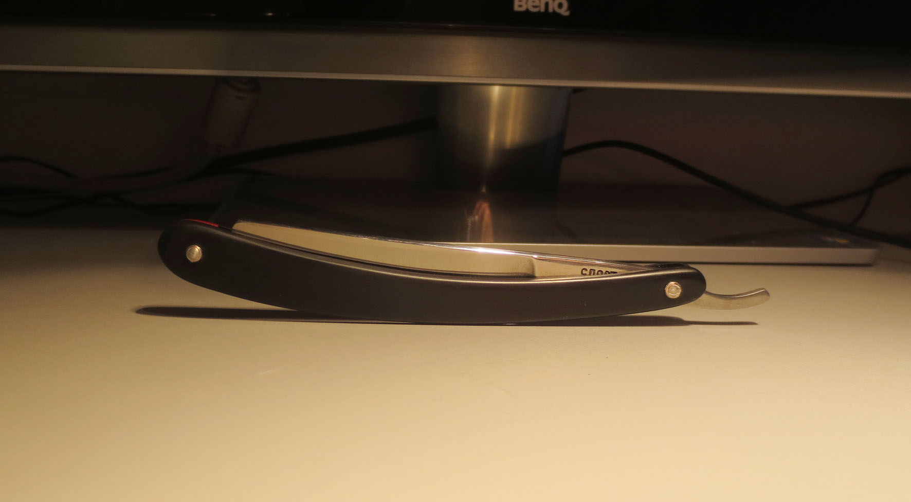 Бритва досталась как довесок к крупной покупке у нашего эстонского друга, в достаточно плачевном состоянии, с обратной улыбкой, сточенным носиком, коррозией и без ручки. Мы ведь не ищем легких путей. Для начала укоротил носик, вычистил ржавчину в пределах разумного, выровнял кромку. Заточил, вполне себе комфортно побрился. Остаточная ширина получилась 15мм. Сделал ручку. Дерево - бук. Пропитка - льняное масло. Клинышек - олово. Помидоры и критика приветствуются. Еще фото Show Изначальное состояние (осторожно, шок-контент) Show
