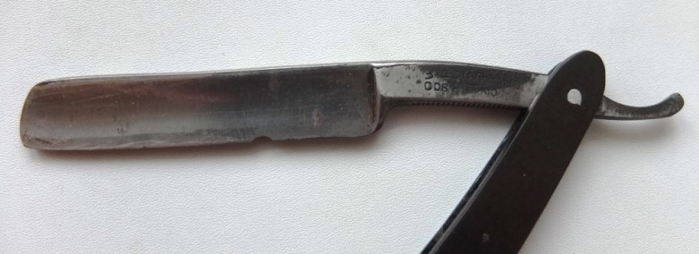 С обратной стороны на эрле №7. Ручка - кость, родная 99%. Коробка не читается, шрифт проглядывается кириллица. "Завод Стальных Изделий" Сов. Р.П.Т. Москвакоробочка - артель Бритва, 52 год, не родная