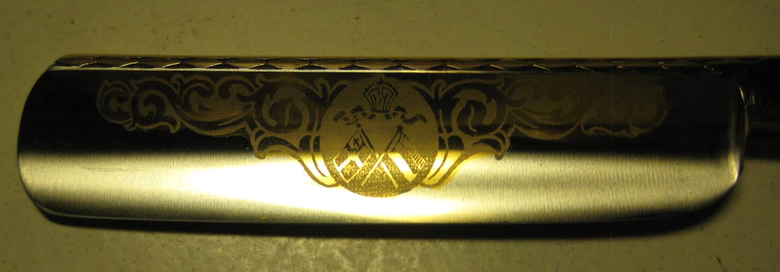 На мой взгляд можно поступить следующим образом: Заполировать весь клинок за исключением лицевой (с рисунком) стороны полотна, затем обратиться к знакомому ювелиру с целью нанести слой позолоты (это стоит буквально копейки), тем более что на шейке бритвы позолота начинает сходить, как видно на фото. Считаю это самым рациональным вариантом. иваныч, дело твое - можешь, как говорится "взять и сделать", а можешь оставить как есть. На любителя. С уважением к форуму и его участникам, Иван.