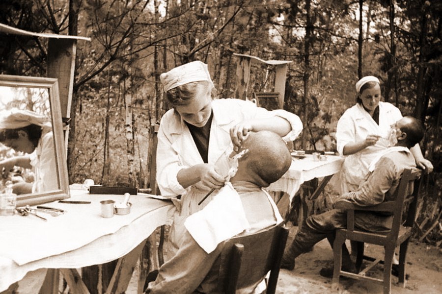 Re: Интересные фото с бритвойВторой Прибалтийский фронт. Фронтовая парикмахерская / Фото: Борис Уткин