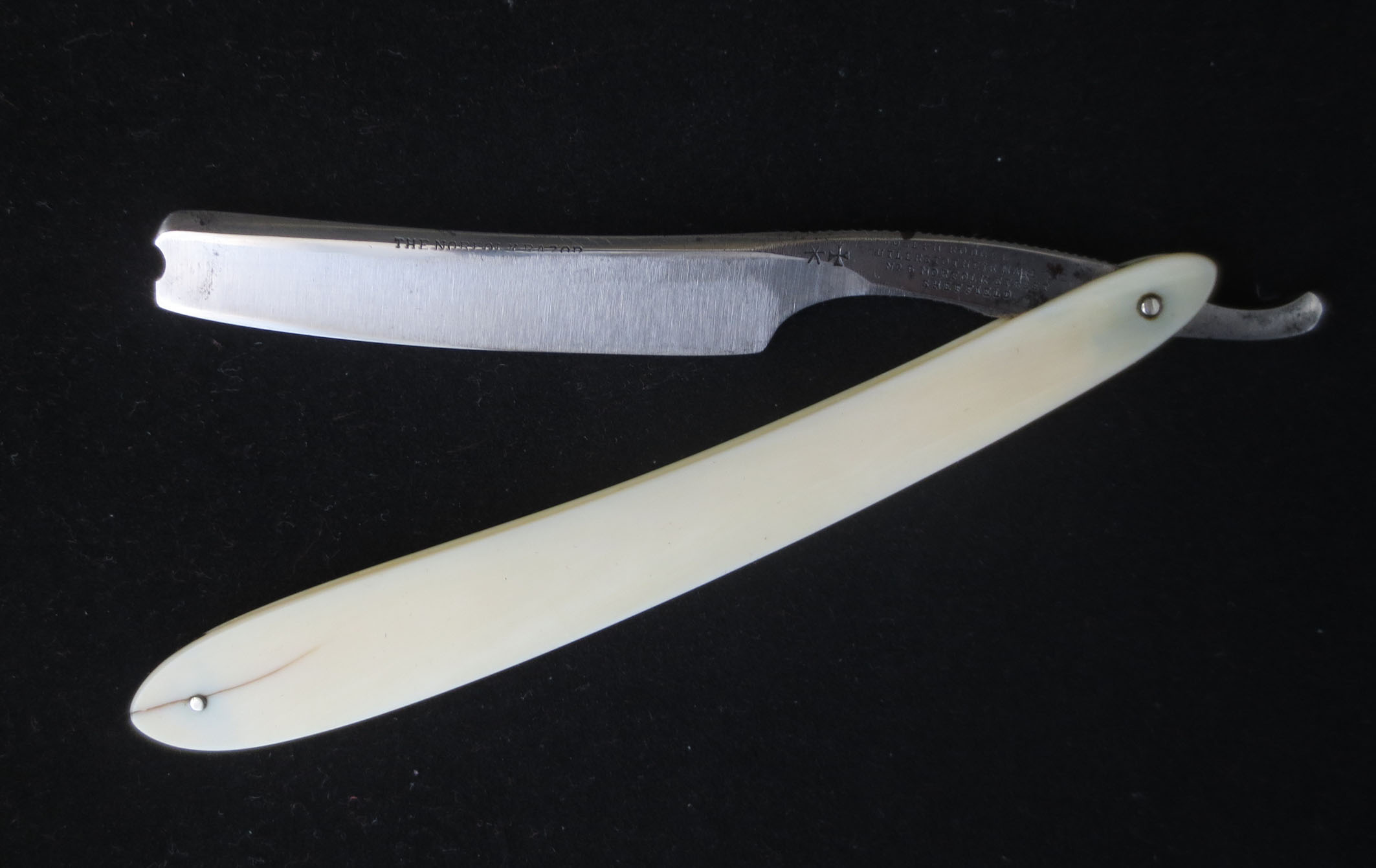 Видно, что у бритвы точилась только часть полотна от середины к носику..