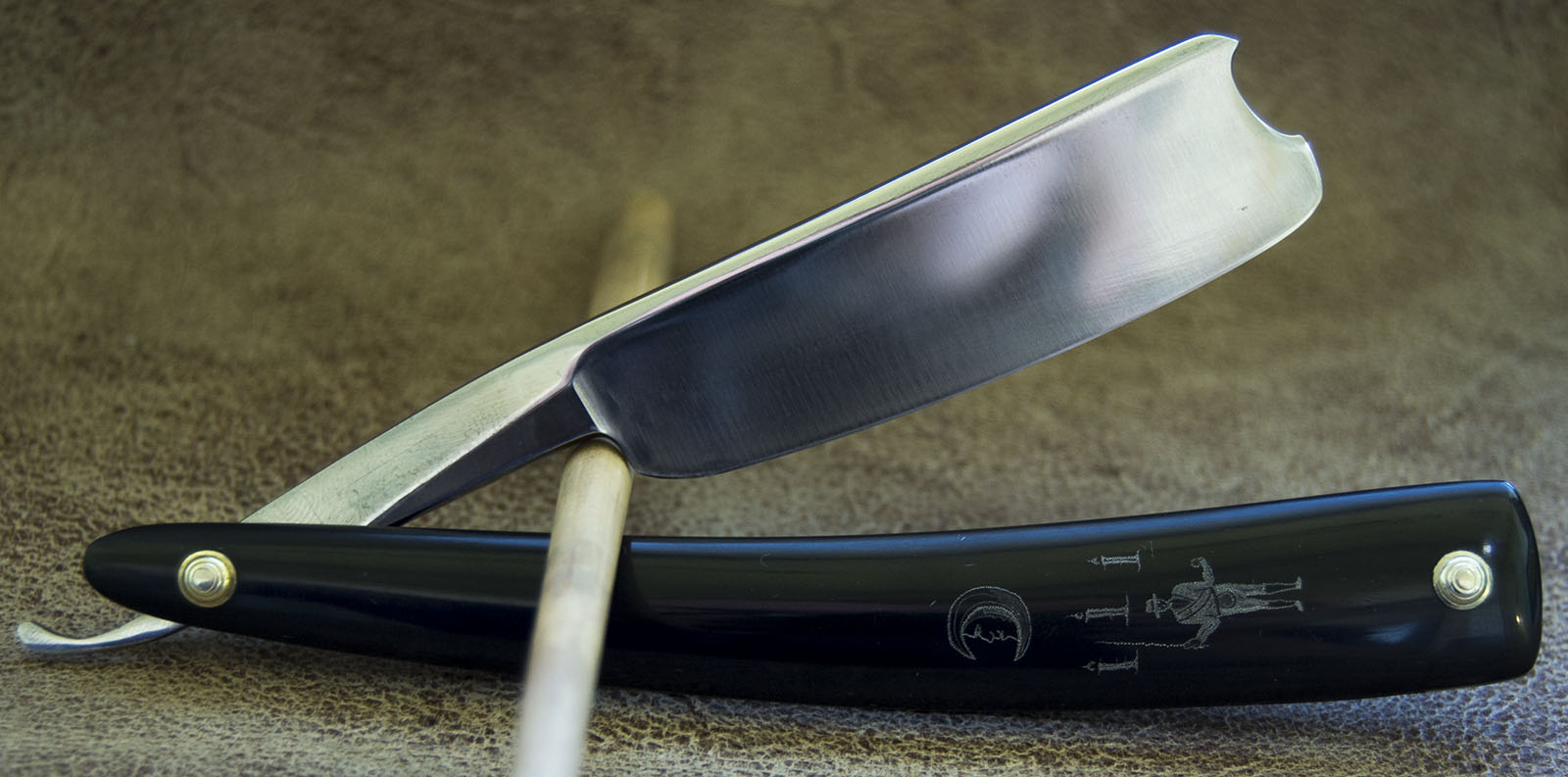 Жемчужина моей коллекции. George Wostenholm & Sons Бритва ориентировочно с 1848 (Год покупки Востенхольмом завода Washington Works) до 1860 гг. На полотне травление на масонскую тематику. Состояние самого полотна отличное, никаких следов заточки на обухе, бритва точилась мной впервые. Максимальная ширина 23.3 мм. Так же уникальность этой бритвы состоит в том, что за годы отслеживания это вообще единственный масон от Востенхольма, который я видел, тем более практически невозможно найти такую бритву в неиспользованном состоянии и без особых следов времени как это полотно. Сталь и геометрия выше всяких похвал, такую тонкую и равномерную кромку на клине 7/8 редко когда увидишь. По моему скромному мнению Масон от Wostenholm круче Масонских бритв от Wade & Butcher с похожим мотивом травления. Он шире, массивнее, форма полотна гораздо интереснее и травление хоть и менее глубокое, но более детализированное. Рукоять выполнена из черного рога буйвола. Рисунок нанесен в технике скримшоу известным мастером Сергеем Подварко(кому интересно можете погуглить.) Рисунок подчеркнуто простой, но не повторяющий полностью травление полотна. Продано Spoiler Show