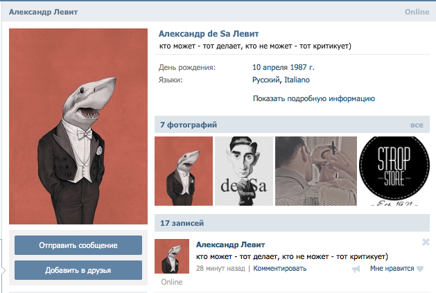 Судя по его статусу на вконтакте