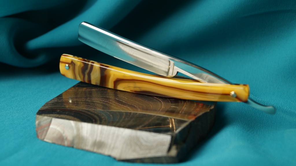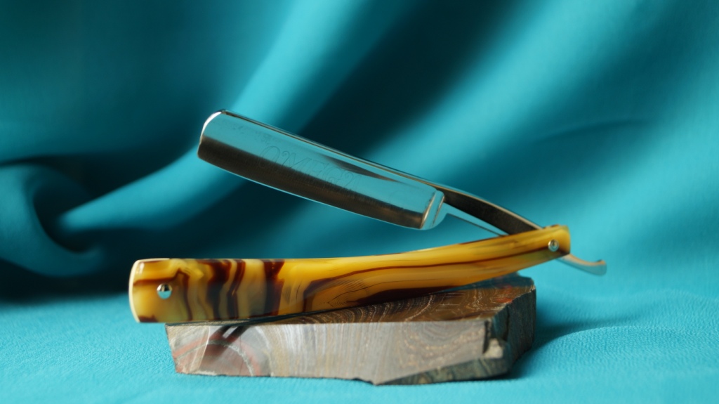 Состояние близкое к идеальному, в использовании не была, точилась мною впервые. Ширина полотна 15 мм, ручка целлулоид. Бритва заточена и готова к бритью, прекрасно подойдет начинающему , т.к. легенькая и маневренная. Продано Omega Show