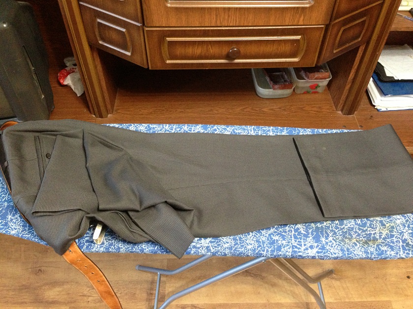 Глажу исключительно на гладильной доске. Она у меня соответствующего размера, так что брюки помещаются полностью, а росту во мне 187 см. Раньше гладил брюки через влажную тонкую хб ткань (по науке проутюжник). Теперь ставлю на утюге отпаривание и пропариваю через хбшку.