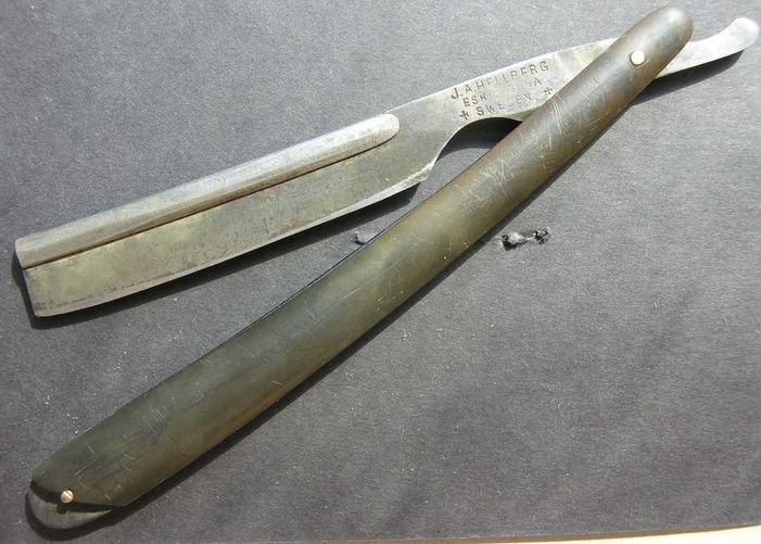 Брить то сможет и даже вполне прилично, но овчинка не стоит выделки, форма клинка самая заурядная и не самая удобная, есть фреймы с тонким эрлем гораздо более интересные, к тому же рукоять эбонитовая под замену, или новую делать или донора искать. Короче если слишком хочется, то можно.... Re: J.A.HELLBERG ESKILSTUNA SWEDENВсе чистится и приводится в порядок. Кроме благородной патины, не вижу проблем. Ручка - да. Эбонит.