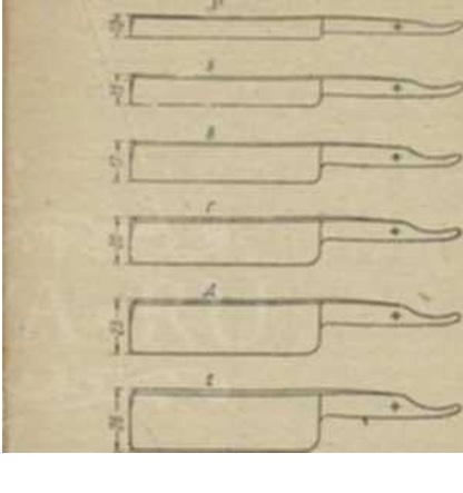 Много текста Show Производство опасных бритв до 1930 г. не выходило из рамок кустарного. Отдельные кустари или мелкие кустарные объединении выпускали бритвы самых разнообразных типов и размеров из самых различных сортов сталей. Качество таких бритв было неудовлетворительно. Никакие исследовательские работы, на основе которых можно было бы установить технические условии на бритвы, разработать научно обоснованный технологический процесс, выработать спецификацию бритвенных сталей и установить для них правильную термообработку, в тот период не велись. Для этого кустарные предприятия не имели необходимых средств, впрочем о постановке такой исследовательской работы в этой второстепенной отрасли промышленности в то время никто еще серьезно не думал. Технологический процесс разрабатывался ощупью и на этой почве процветало секретничество. Как только тому или иному кустарю удавалось выпустить бритву удовлетворительного качества, весь технологический процесс и в особенности термообработка её превращались в секрет отдельных лиц, которые чрезвычайно ревниво оберегали его. Надо сказать, что подлинная ценность этих производственных секретов была очень низкая, и как только в производство попадала сталь хотя бы с небольшими отклонениями от стандартных качеств, секретный способ производства уже не давал нужных результатов и требовались многочисленные опыты, чтобы изменить этот способ, добиться опять удовлетворительного качества бритвы. Совершенно не удивительна та пестрота качеств опасных бритв, которая при таких условиях наблюдалась на практике. Все эти производственные секреты сейчас открыты. Государственные предприятия имеют теперь в своем распоряжении микроскопы, точные измерительные инструменты, химические лаборатории. Под производство опасных бритв подведена научно-исследовательская база. Но этот путь государственная промышленность встала с первых же дней освоения производства бритв. При разработке научно обоснованного технологического процесса производства высококачественных опасных бритв нельзя было использовать многолетний опыт работы иностранных фирм по производству бритв, так как они тоже засекречивали свои способы производства, и в иностранной литературе почти никаких материалов по этому вопросу не имеется. Около года продолжались работы Ленинградского института металлов и свыше года работа Московского института стали им. Сталина по исследованию свойств клинков бритв как заграничного, так и отечественного производства, причем подверглись изучению не только вопросы влияния различных составов сталей на качество изделий, но также вопросы термической и механической обработки лезвий. В результате этой работы и использования того, что удалось почерпнуть в иностранной литературе, мы в настоящий момент располагаем достаточными данными для того, чтобы правильно решить проблему выработки высококачественных опасных бритв при различных составах сталей. Бритва, как режущий инструмент, работает в чрезвычайно специфических условиях. По данным Кайзера, поверхность лица, подвергаемая бритью, составляет около 250 кв.см. Считая, что при нормальной густоте растительности на 1 кв.см. кожи человека помечается около 100 волосков получаем, что на выбриваемой поверхности лица имеется около 25000 волосков. Бритьё 