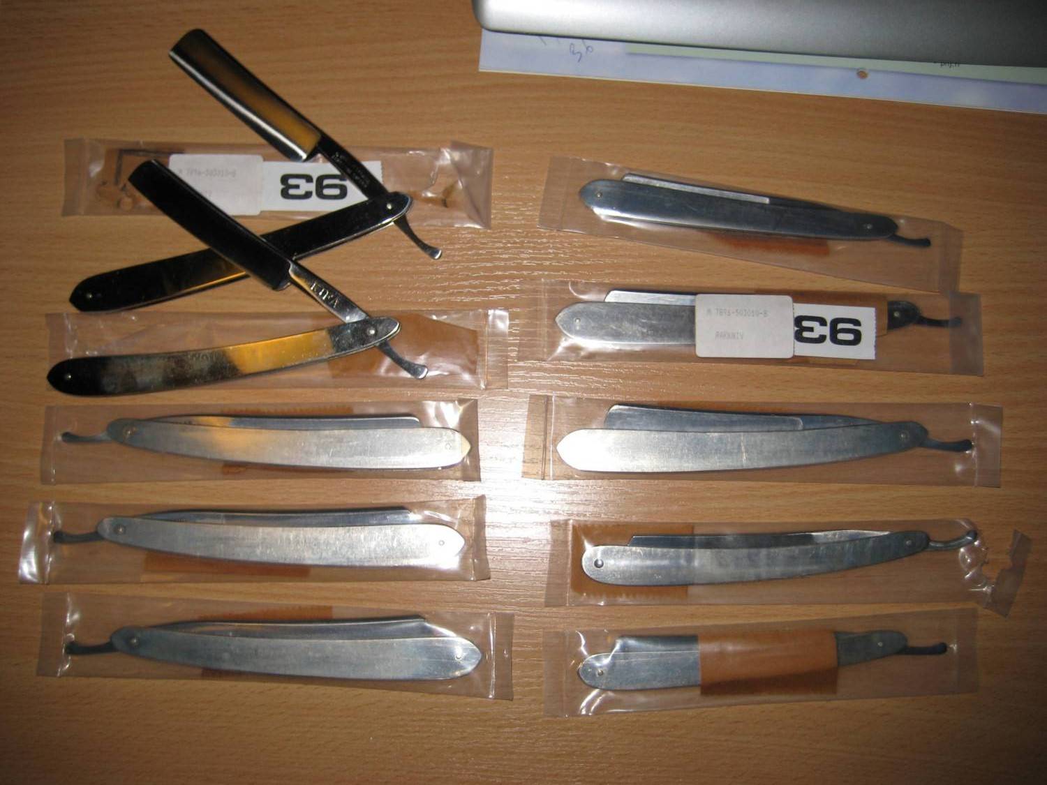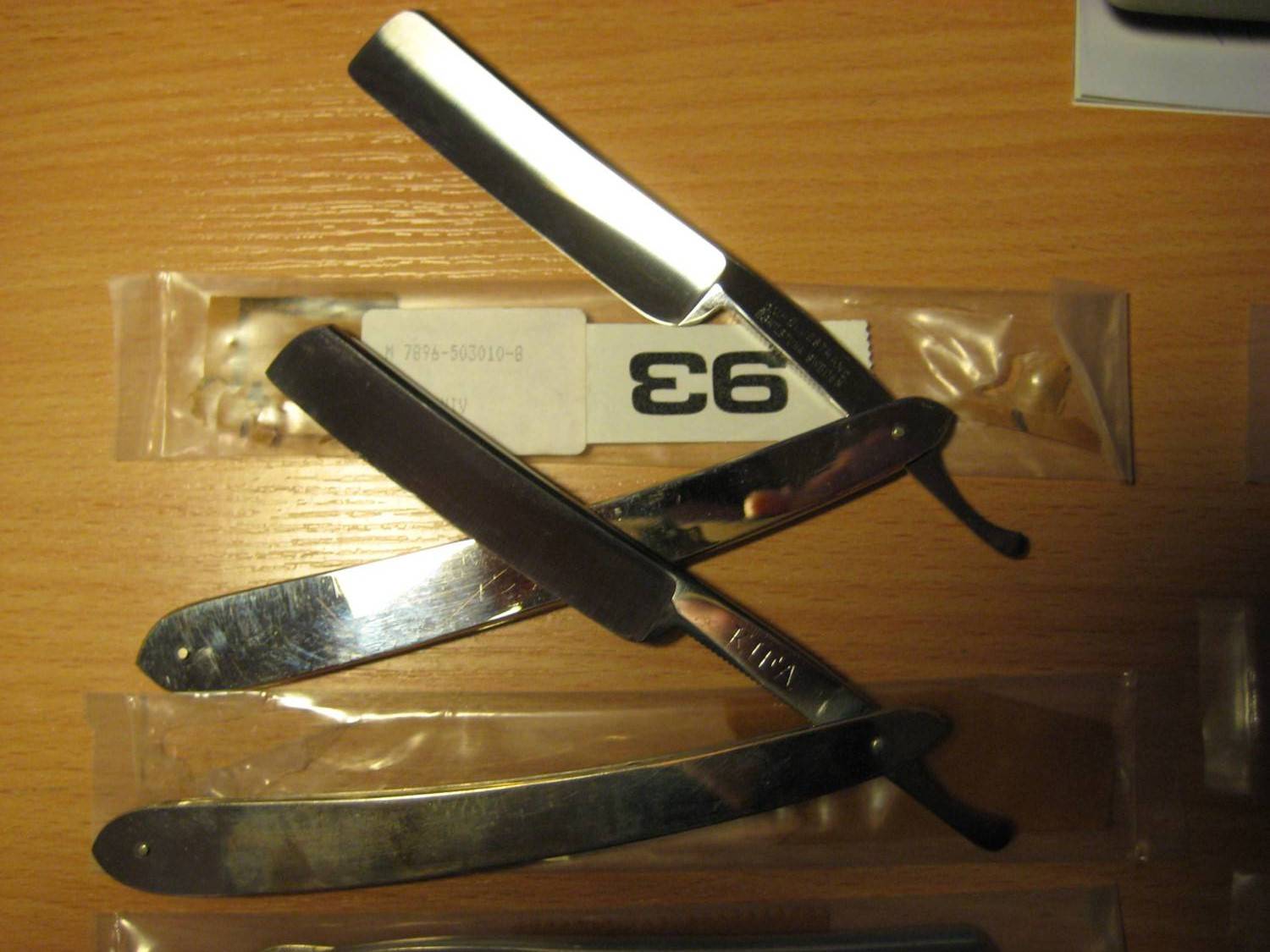 10 новых бритв, со шведского армейского склада (так мне сказали), в пакетиках все были, запечатанные. Я взял 9 и одну мне дали в подарок. 8 Heljestrand 23, одна KIFA и одна без имени. Продавец сказал, что ещё может достать, но будет уже подороже на 5 евро (быстро он выучил урок). Spoiler Show