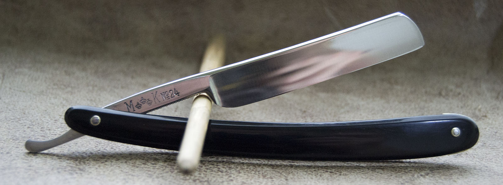 Бритва производства США. NOS. Ширина 5/8 рукоять из эбонита. Вогнутость 1/2. По качеству стали и геометрии не уступает лучшим европейским бритвам. Клеймо на полотне удивительно глубокое и отчетливое, что встречается крайне редко - большинство производителей ограничивались легким травлением. Заточена, готова к бритью. Продано Spoiler Show