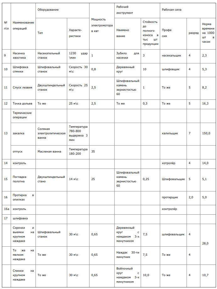 Много текста Show Производство опасных бритв до 1930 г. не выходило из рамок кустарного. Отдельные кустари или мелкие кустарные объединении выпускали бритвы самых разнообразных типов и размеров из самых различных сортов сталей. Качество таких бритв было неудовлетворительно. Никакие исследовательские работы, на основе которых можно было бы установить технические условии на бритвы, разработать научно обоснованный технологический процесс, выработать спецификацию бритвенных сталей и установить для них правильную термообработку, в тот период не велись. Для этого кустарные предприятия не имели необходимых средств, впрочем о постановке такой исследовательской работы в этой второстепенной отрасли промышленности в то время никто еще серьезно не думал. Технологический процесс разрабатывался ощупью и на этой почве процветало секретничество. Как только тому или иному кустарю удавалось выпустить бритву удовлетворительного качества, весь технологический процесс и в особенности термообработка её превращались в секрет отдельных лиц, которые чрезвычайно ревниво оберегали его. Надо сказать, что подлинная ценность этих производственных секретов была очень низкая, и как только в производство попадала сталь хотя бы с небольшими отклонениями от стандартных качеств, секретный способ производства уже не давал нужных результатов и требовались многочисленные опыты, чтобы изменить этот способ, добиться опять удовлетворительного качества бритвы. Совершенно не удивительна та пестрота качеств опасных бритв, которая при таких условиях наблюдалась на практике. Все эти производственные секреты сейчас открыты. Государственные предприятия имеют теперь в своем распоряжении микроскопы, точные измерительные инструменты, химические лаборатории. Под производство опасных бритв подведена научно-исследовательская база. Но этот путь государственная промышленность встала с первых же дней освоения производства бритв. При разработке научно обоснованного технологического процесса производства высококачественных опасных бритв нельзя было использовать многолетний опыт работы иностранных фирм по производству бритв, так как они тоже засекречивали свои способы производства, и в иностранной литературе почти никаких материалов по этому вопросу не имеется. Около года продолжались работы Ленинградского института металлов и свыше года работа Московского института стали им. Сталина по исследованию свойств клинков бритв как заграничного, так и отечественного производства, причем подверглись изучению не только вопросы влияния различных составов сталей на качество изделий, но также вопросы термической и механической обработки лезвий. В результате этой работы и использования того, что удалось почерпнуть в иностранной литературе, мы в настоящий момент располагаем достаточными данными для того, чтобы правильно решить проблему выработки высококачественных опасных бритв при различных составах сталей. Бритва, как режущий инструмент, работает в чрезвычайно специфических условиях. По данным Кайзера, поверхность лица, подвергаемая бритью, составляет около 250 кв.см. Считая, что при нормальной густоте растительности на 1 кв.см. кожи человека помечается около 100 волосков получаем, что на выбриваемой поверхности лица имеется около 25000 волосков. Бритьё 