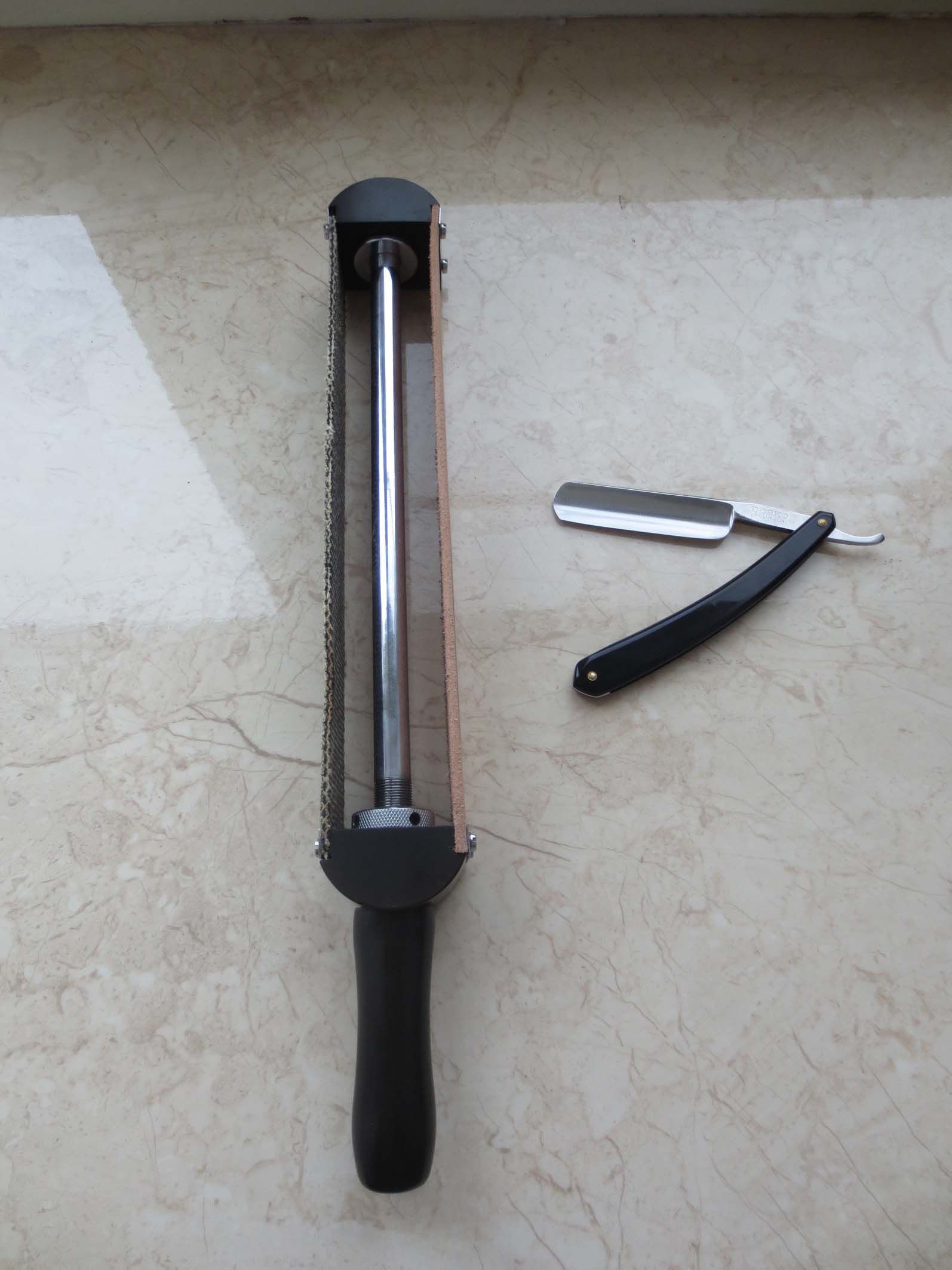 решил отреставрировать: - Поменял кожу, отмыл, вычистил стропу, заменил кое-что по мелочи.. Материал основы- эбонит и нержавейка, такой массивный и тяжёлый предмет...) Spoiler Show Бесит, когда приходится пользоваться бритвой моложе себя...