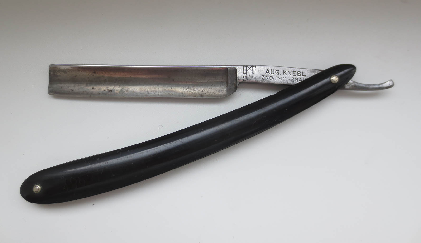 Aug. Knesl - "Nožíř - Messerschmied Znojmo" ( написано по чешски и немецки - "ножовщик из Зноймо") http://britvy.webnode.cz/tags/%C4%8Desko/" onclick="window.open(this.href);return false;