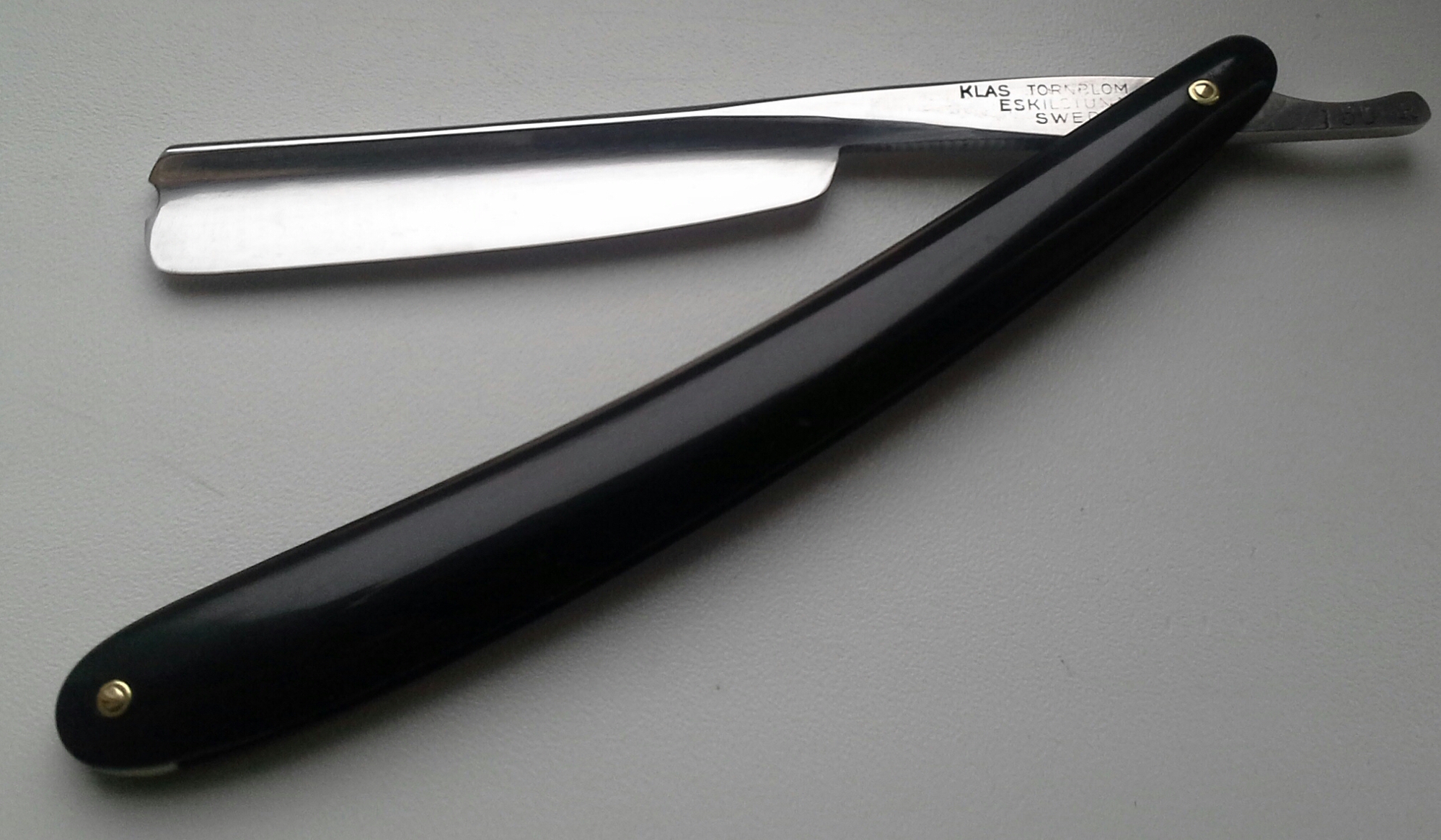 E.G. GUSTAFSON&Co Швеция, ширина 11/16, клин, ручка - дерево(эбен, оригинал), кожаный чехол, заточена и готова к бритью. продано GUSTAFSON Show Re: Продаётся от FransБритву ssa шведку и точилку сегодня получил, очень рад- большое спасибо. Шведская сталь просто не подражаема а ручка ручной работы из натуральных материалов это как раз то чего не достает шведским бритвам. Ни англичане ни французы до сих пор не рассказали им где брать сырье. После испытания в работе -просто пять баллов по пятибальной шкале. От точилки тоже в восторге очень тонкая работа никогда такой не было- пока не испытывал. Обычно два альпинистскиих карабина амеж ними ремень. Пора привыкать к лучшему. Еще раз спасибо.