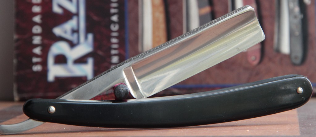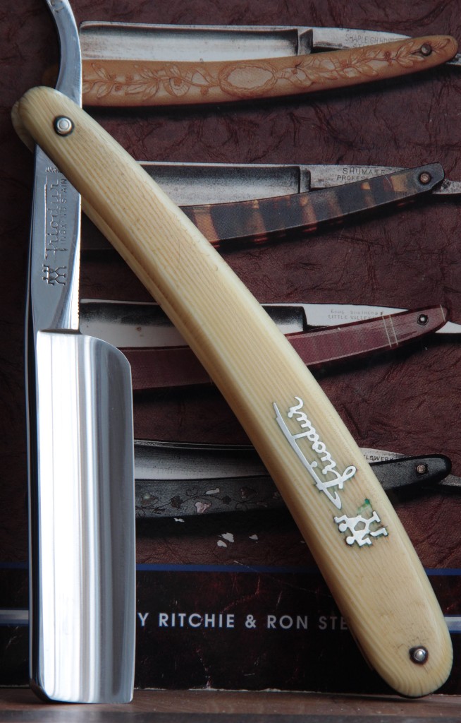 Тяжёлая бритва, в красивой перламутровой оправе.Ничего не разбиралось. Всё родное. Полотно в хорошем состоянии. Кромка чистая. Идеальная геометрия изготовления. Шикарно бреет. Проверено. Мягкое, чистое бритьё. Смело можно рекомендовать такую бритву в качестве первой для новичка.