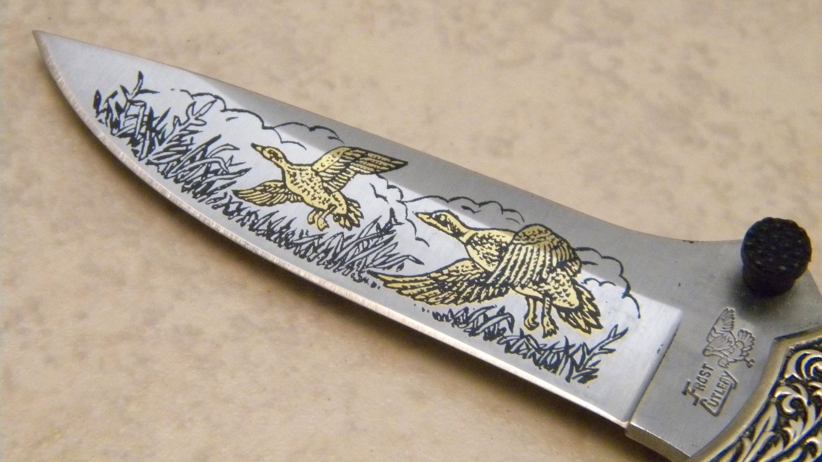 Frost Cutlery Surgical Steel Micarta Lockback Knife Ducks Etch Utile dulci miscere (лат.) — Соединять приятное с полезным.