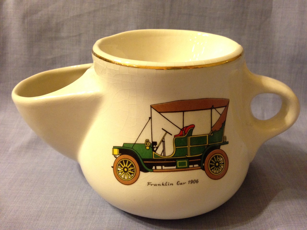 С апликацией автомобилей: Solden's Motor Wagon 1877 Franklin Car 1906 Winton Car 1898 Кружки без сколов. По всем кружкам на глазури идут трещины на фото видно Кипяток наливался никаких проблем трещины на глазури не увеличиваются и никак не проявляются. состояние антиквариат Одной такой пользовался с пол года. Эти лежат без дела Кружки продавались набором 5шт., указано было состояние NOS Осталось Цена кружки 1500р Доставка на покупателе. P.S. Желательно Москва так как за почту отвечать не хочется, а они даже железные вещи умудряются сломать. Фото Solden's Motor Wagon 1877 Spoiler Show Spoiler Show Spoiler Show