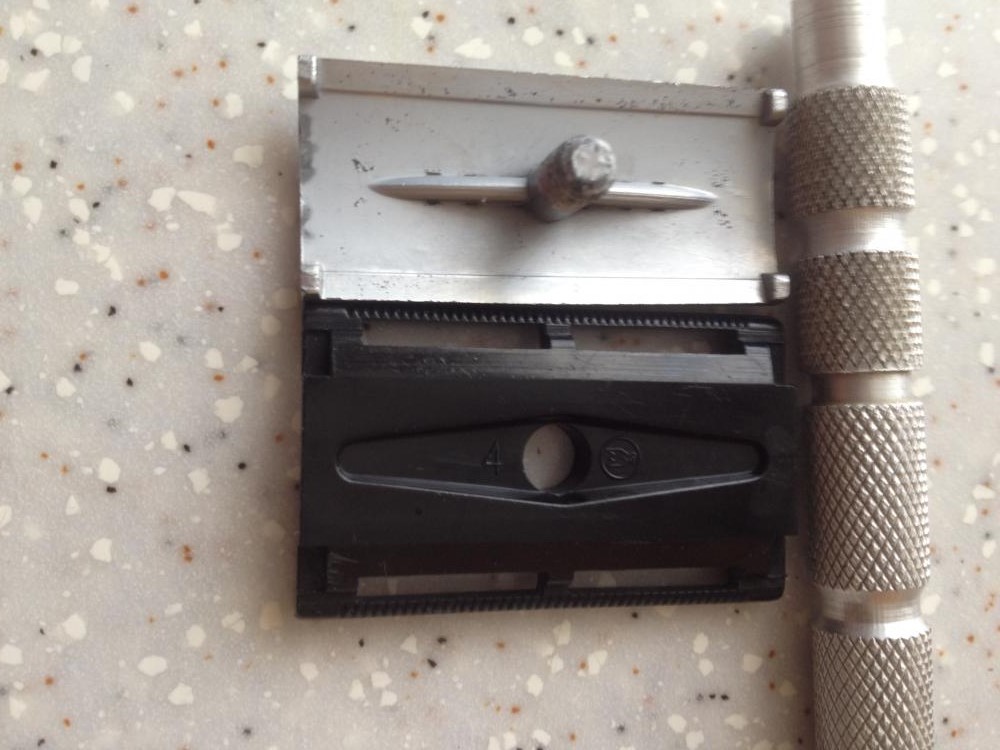 Re: Т-образные станкиЗакину тяпку-джиллетт в топку, голову теперь брею тэшкой. На выходных достал свой старый станок, протестил. Ручка - алюминий, верх головы похож на силумин, низ - пластик. Производитель, судя по всему, отечественный, на пластиковой части есть цифра 4 и какое-то типа клеймо в виде стилизованной птички (или не птички, не знаю). По ощущениям бреет агрессивнее, но чище, чем имеющийся у меня жиллеттовский Slim Twist. Разок резанулся, а точнее срезал кусочек кожи размером 2 на 3 мм.