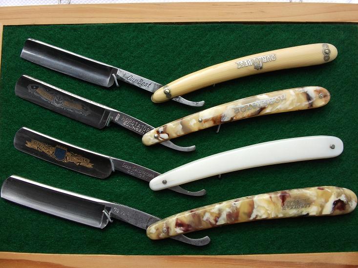 Слева направо: * Ока, Труд Вача. 6/8", 1956 * Двухзаковная, СТИЗ, 6/8", 1957 * Puma, No. 1938, 5/8", 1938 (?) Ока была приобретена на молоток.ру за 500 р. Оставшиеся 2 бритвы перешли ко мне по наследству.