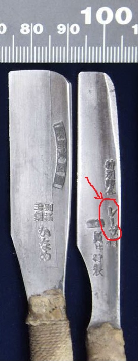 Очень часто на бритвах встечается надпись 手打レーザ "тэучи разор", "бритва ручной работы". В японском как и в руском есть слова синонимы. И почему япы писали "разор ручной работы", а не "камисори ручной работы" я тебе затрудняюсь ответить.. Тоже наверное в свое время подхватили дурную привычку использовать вместо родных слов иностранные.. Как мы со стропами и хонингами..