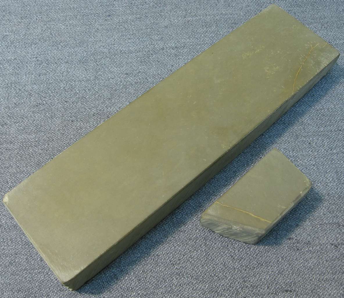Размеры камня: 184*51*22 мм, вес: 497 мм. Тома-нагура отдельно. Вес нагур: томо-нагура - 55 гр, ботан - 87 гр, тензе- 75 гр, маджиро - 79 гр. Цена за все (продаю ровно за столько покупал): 7200 руб. Доставка почтой-россией 1 классом бандеролью - 250 руб. Доставка ускоренная - считается отдельно (смотря в какой город и какой компанией). В г. Новосибирск можно посмотреть, попробовать, и забрать лично. Камень таким как я его купил, можно посмотреть тут: http://www.ebay.com/itm/261303000749?ss ... 1439.l2649" onclick="window.open(this.href);return false; В последствии печати стерлись, а так же я отпилил кусочек на томо-нагура (его же камень для наведения суспензии), обратная сторона была выровнена, как и передняя и обе стороны доведены до зеркала под углом. С одного угла с одной из с торон имеется желтая прожилка, которая иногда немного ощутима при работе на чистом камне и думаю лучше её обходить. Эта же сторона камня практически прямоуголна-плоская, обратная с некоторыми сколами, по 2 углам. Никаких трещин нет - смотрите пожалуйста фото, там всё видно. Камень работает крайне быстро, суспензия выделяется, при работе на чистом камне, неохотно, но она есть. Ещё цитата моя же из другой темы: Spoiler Show