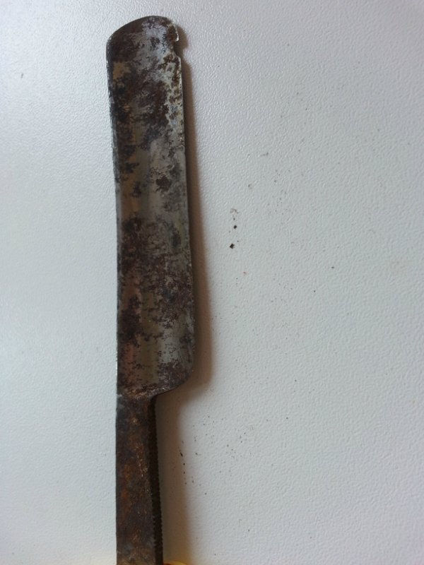 Re: Подскажите возможно ли бритву вернуть к жизни, востановиНашлась в гараже бритва деда. Состояние видно на фото. Сколы на режущей кромке, ржавчина.
