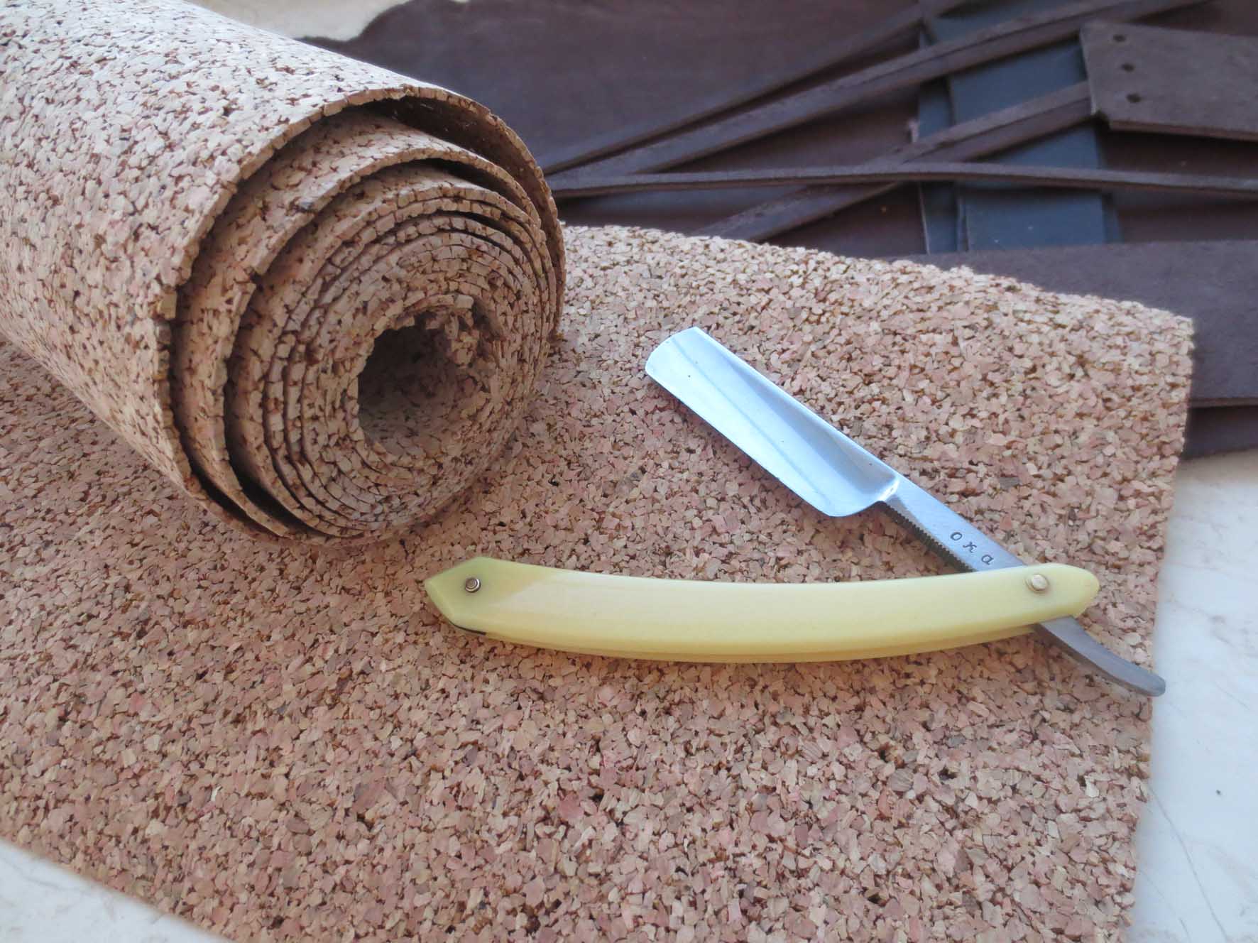 а и вот такую пробковую подложку под ламинат, оставшуюся от ремонта квартиры. Отрезал кусочек, поработал и выбросил..стоит копейки в строительных магазинах. Бесит, когда приходится пользоваться бритвой моложе себя...