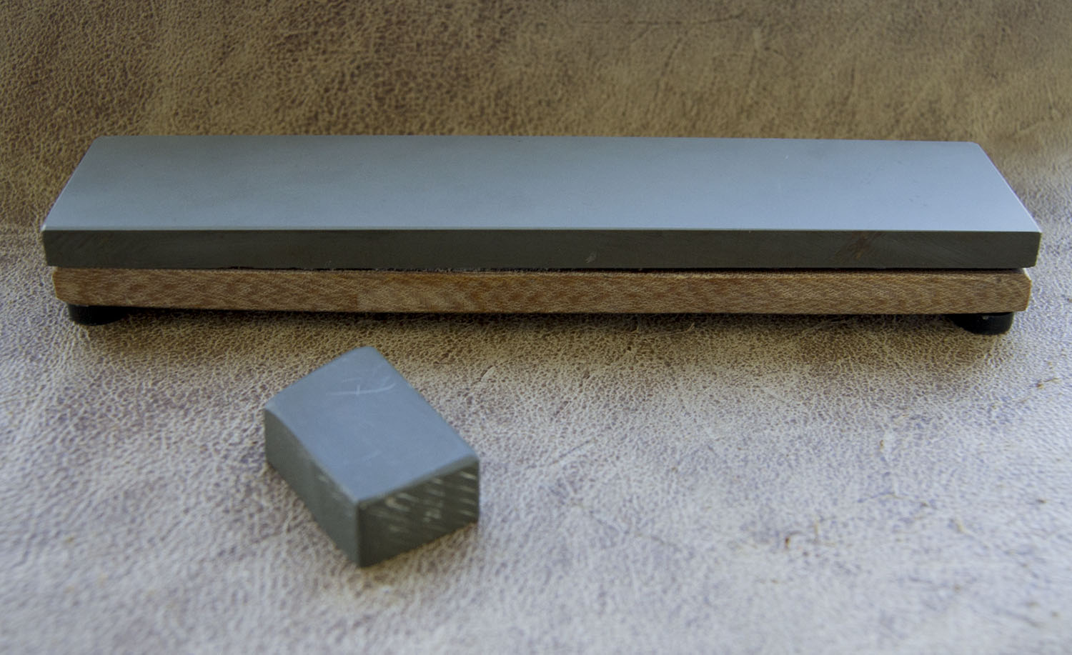 Старый тюрингский сланец, мне достался в наборе со старым скарбом немецкого цирюльника. Камень сильно выработан, но тем не менее при правильном использовании хватит на нескольких десятилетий использования. Камень очень качественный и однородный, цвет светло - зеленый, в комплекте слурик - от камня Петера Бахмана. Размер камня - 203*45, толщина 8-10 мм. Камень выровнен, притерт и приклеен к текстолитовой основе с резиновыми ножками. Продано Spoiler Show