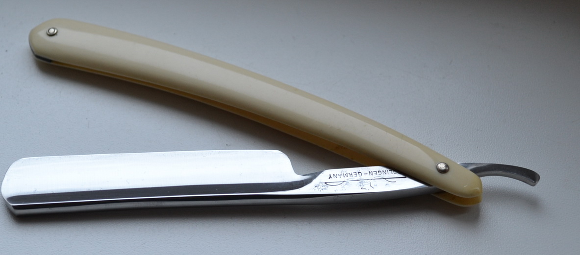 WELT RUF SCHUTZ MARKE SOLINGEN GERMANY Германия, ширина 9|16(15мм), вогнутость - 1/2, ручка -целлулоид, НОС. Не точена. Может входить в набор с ремнем для правки. продано WELT Show 5