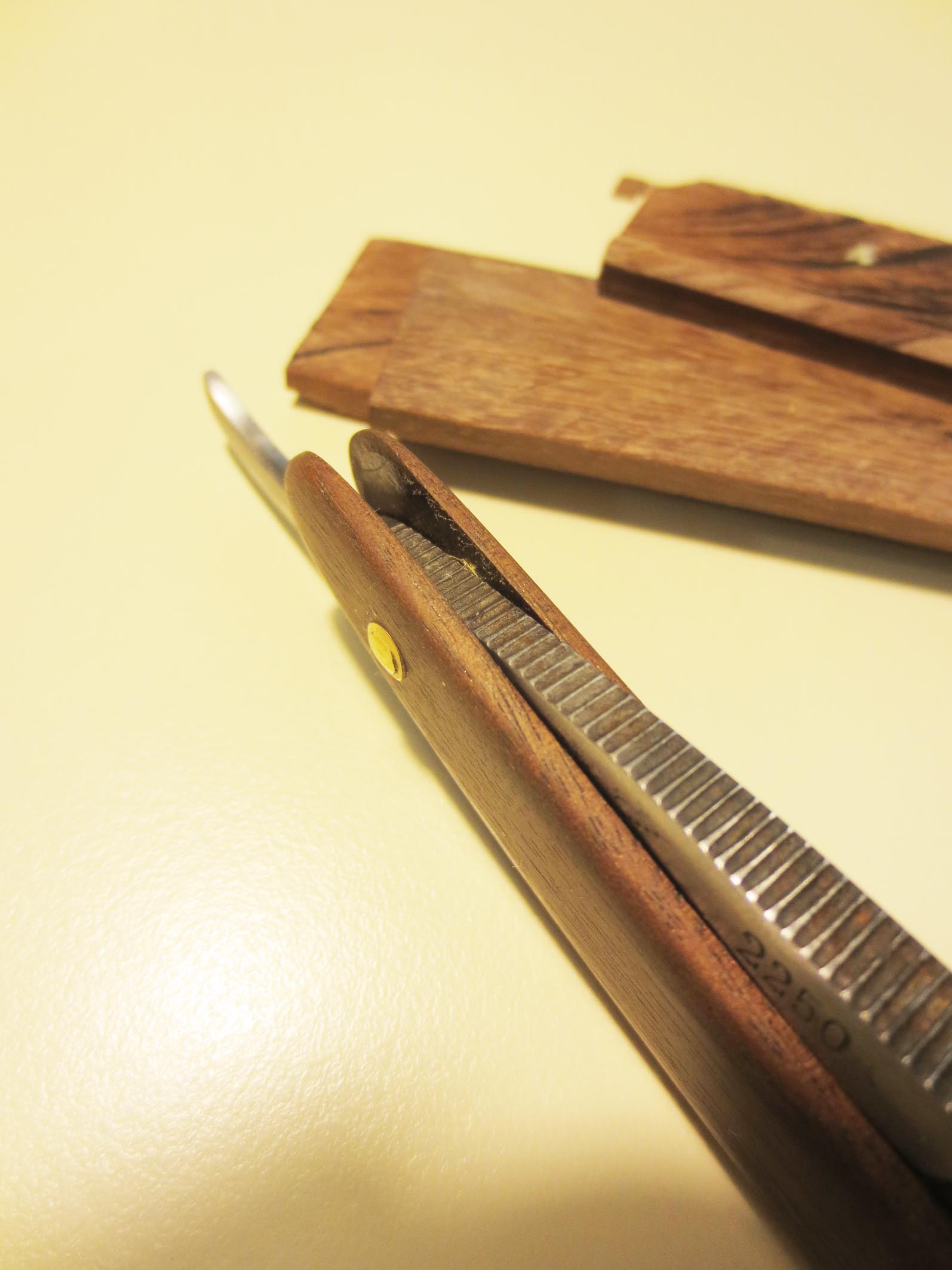 Кстати, о микарте. Энто по-нашинскому - текстолит. И тут открывается поле для творчества. Берется ткань, пропитываются эпоксидкой, набирается пакет в нужное количество слоев, под гнет с промежуточным слоем от залипания - просто полиэтилен, и заготовка для ручки готова. В зависимости от ткани может получиться очень красивая штуковина. Нужно только сделать пробный набор, и если получится слишком хрупкая пластинка, добавить в эпоксидку пластификатор - дибутилфталат, или просто немного какого-нибудь синтетического клея.