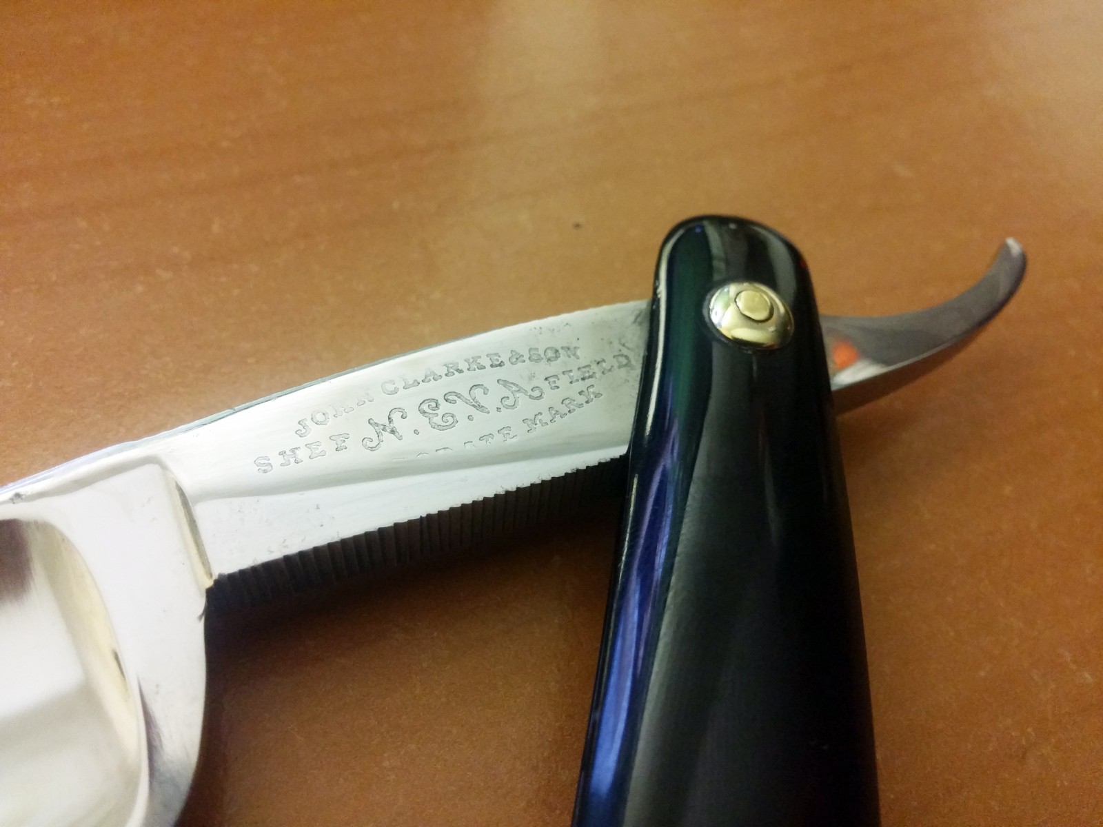 В коллекцию. Приезжал ко мне в гости канадский корефан, привез вот такую бритву JOHN CLARKE&SON в подарок, зная об увлечении. Где купил не говорит. Оттер ее немного и по привычке полез искать информацию о годе и производителе, но во-первых, ее мало, а во-вторых - именно такой формы я не нашел  переделка ?  . С годом тоже как-то не срослось). Подмогните, знающие, очень интересна мне информация по этой бритве. Может внешний вид о чем скажет. На полотне надпись UNIQUE. Увесистая, ржа только в районе пина, остальное в патине. В планах - отправить в заточку и в дело.