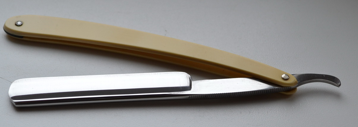 WELT RUF SCHUTZ MARKE SOLINGEN GERMANY Германия, ширина 9|16(15мм), вогнутость - 1/2, ручка -целлулоид, НОС. Не точена. Может входить в набор с ремнем для правки. продано WELT Show 5